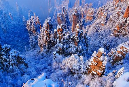 張家界三千奇峰、八百秀水,用“雄、奇、險(xiǎn)、秀、幽”5字來(lái)概括,早已得到大眾的公認(rèn)。張家界的山水,稱(chēng)得上是風(fēng)景山水的經(jīng)典;游張家界,則成為人生的宿愿和幸事。飽覽張家界,可謂四時(shí)皆宜:春天,是大地充滿(mǎn)靈氣的季節(jié),張家界此時(shí)的山水,充滿(mǎn)著生氣,充滿(mǎn)著向往,它的每一座山峰,每一道水溝,都舉著搖曳多姿的花朵,是表示對(duì)游人的歡迎,更是表達(dá)一種生命的意境;夏天,是空氣膨脹欲望的季節(jié),張家界此時(shí)的山水,充滿(mǎn)著遐想,充滿(mǎn)著誘惑,它的一草一木,一枝一葉,都滴瀉著生命的翠綠,裝飾著每一座山峰,蘊(yùn)含著人生的幻想和追求;秋天,是星月喜慶豐收的季節(jié),張家界此時(shí)的山水,一樣地走向深厚,一樣地寫(xiě)滿(mǎn)沉穩(wěn),它的山山嶺嶺,它的溝溝壑壑,在翠綠的底色中亮出火一樣的紅葉,抒寫(xiě)著熱情,歌吟著成熟與奔放;冬天,是風(fēng)花雪月般詩(shī)意的季節(jié),張家界此時(shí)的山水,冷峻中透著溫情,蒼茫里飽含著魄力,它的一座座石峰,它的一棵棵巖松,都是一個(gè)個(gè)冰清玉潔的世界,它們都玉樹(shù)臨風(fēng)般燃燒著,引發(fā)著游客的激情,而那些冰雪覆蓋的小溪,流水在動(dòng)情地吟唱,就像有情人心中的歌吟,最易撩動(dòng)愛(ài)人的衷腸。我愛(ài)張家界四季的景色,但我更愛(ài)張家界的冬天,我愛(ài)在冬天里與張家界的山水對(duì)話,我愛(ài)在冬天里到張家界的山水間去暢游,去作一種思想的飛翔! 張家界的冬天并不寒冷,這主要是因?yàn)樗闹芏喔呱剑@里的冬季多為晴朗天氣,故區(qū)域小氣候較為溫暖,暢游張家界無(wú)須冒嚴(yán)寒之苦,又可避開(kāi)歷酷暑之難。即使是雨雪天氣,因?yàn)榫皡^(qū)是一個(gè)高出的整體平臺(tái),小地形則是一塊盆地,所有的景觀就好比一個(gè)放大的盆景,所以在游歷觀賞的行程中,并無(wú)寒氣逼人、冷酷加身的感覺(jué)。一旦遇上陰雨天氣,景區(qū)因海拔較高,山地氣候又特別明顯,放眼望去,枝枝葉葉便都成了水晶般的世界,精靈奇巧的霧凇千姿百態(tài),笨拙憨厚的灌木清純天成。若是有雪降臨,不管大小,山上立即便會(huì)是一個(gè)白雪皚皚的世界,恰似翡翠盤(pán)中堆砌著白玉,那些巖壁上的枯枝古樹(shù),此時(shí)又煥發(fā)青春,讓人不由得想起兩句古詩(shī):“春來(lái)苔作葉,冬至雪為花。”我曾陪《羊城晚報(bào)》的一位朋友冬游張家界,她興致極高地滿(mǎn)山里跑,她說(shuō):“此山此景,人生頭一回遭遇,可望而不可求,遺憾的是沒(méi)有看到雪境里的張家界。”真是老天作美。第二天,我們?cè)谏缴献咧咧炜毡泔h起了雪花,頃刻之間,便是一個(gè)雪花飛舞的世界,大地上石峰上樹(shù)上身上的雪花,就像火苗一樣點(diǎn)燃了朋友的激情,她情不自禁地面對(duì)著山野吟哦起來(lái)——親切而新鮮的雪花,落下來(lái),在夢(mèng)幻深處,在心靈深處,就像飄落的雪白的火焰,溫暖我人生的境界點(diǎn)燃我生命的激情……雪花落下來(lái),落滿(mǎn)大地、石峰和樹(shù)冠豐腴著山峰、溝壑和想象為詩(shī)意和行程增加了厚度,雪清新,溫暖,純潔,冷冽它是自然的語(yǔ)言,火辣辣的語(yǔ)氣中帶著熱情,還有看不見(jiàn)面的堅(jiān)硬和銳利…… 作為一個(gè)南方的朋友,見(jiàn)到如此美妙的雪的世界,她的激動(dòng)和驚喜,完全是我意料中的事;而讓我驚奇的是從不作詩(shī)的她,竟然意隨興致的吟唱出如此語(yǔ)意雙佳的詩(shī)作來(lái)。 雪中游張家界,你無(wú)需為安危著想,景區(qū)的工作人員,無(wú)論何時(shí)何地,都是游客的保護(hù)神。在我的記憶中,深深地記得2000年正月初一的那天,我與攝影界的朋友游張家界,每到一處,各種接待工作都井然有序,清路工人硬是在一尺余厚的積雪上,清出了通往每一個(gè)景區(qū)景點(diǎn)的道路,每一處易出事故的地方,都有工作人員守護(hù)。在天子山頂,我們遇到一群臺(tái)灣游客,他們高興地指著冰天雪地的景區(qū)景點(diǎn)說(shuō):“張家界山美水美人更美,張家界的雪景則是美上加美,每一座石峰都冰清玉潔,每一棵樹(shù)都玉樹(shù)臨風(fēng),真是一個(gè)美妙的雪世界啊!” 張家界的森林覆蓋率達(dá)99.7%以上,植物科目種類(lèi)比整個(gè)歐洲大地還多。因此,冬游張家界,滿(mǎn)眼里仍然是綠色的世界,這就是它與北方景觀的區(qū)別。即使是冰天雪地,那臨風(fēng)玉樹(shù),那挺立的石峰,透過(guò)冰雪,仍然會(huì)展現(xiàn)出綠色,就像一個(gè)翡翠的世界。置身于這樣的景致里,使你的感覺(jué)不寒不躁,如早春二月,心如春芽。這時(shí),你心隨景移,興隨景起,你會(huì)由衷地感嘆:“這世界多么美妙,真是個(gè)賞雪景的勝地。”? 冬天去張家界賞雪景,游客不用自己為交通食宿多操心。如今去張家界,公路、鐵路、航路三位一體,十分方便,市內(nèi)去景區(qū)也已修成了高等級(jí)公路,返往暢通無(wú)阻。旅游通行是景區(qū)旅游,市內(nèi)住宿,各類(lèi)檔次的賓館任由選擇。盡管景區(qū)山高溝深,路陡程長(zhǎng),但游客無(wú)需為勞累擔(dān)憂(yōu),景區(qū)內(nèi)已建成兩條上山索道和一條上山升降梯,上黃石寨、天子山、袁家界等核心景區(qū),只是一瞬間的事情。即使在山上走累了,隨處可以叫一架滑竿,轎夫都是些訓(xùn)練有素的精