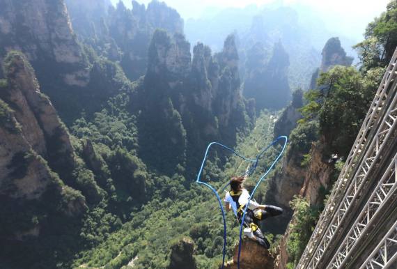 張家界,是湖南一個(gè)著名的風(fēng)景區(qū),一座天然的森林公園。黃石寨、天子山、金鞭溪等勝境,是令游人心馳神往之地。在我們出發(fā)之初,心就早已高高飛揚(yáng),五個(gè)多小時(shí)的顛簸終于把我們載到了目的地,導(dǎo)游是一個(gè)年輕的女孩子,一見(jiàn)面就放開(kāi)歌喉唱了首當(dāng)?shù)赝良易宓母柚{,歌聲婉轉(zhuǎn)動(dòng)聽(tīng),一下子讓我們領(lǐng)略到了鄉(xiāng)村